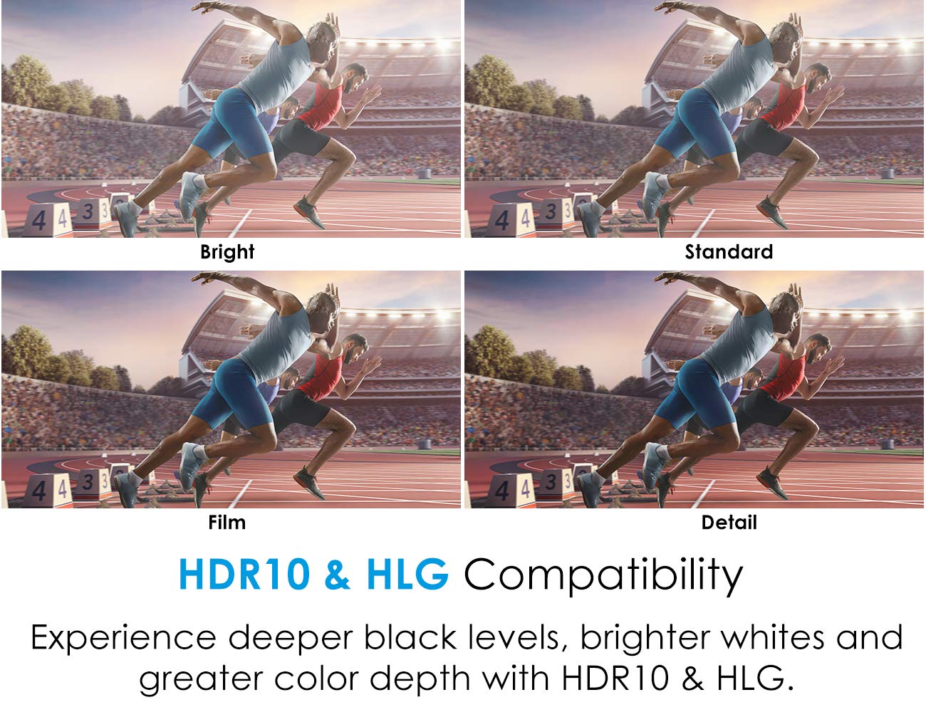 - HDR & HLG COMPATIBLE: Enjoy brighter whites and deeper black levels for an enhanced viewing experience of images and videos, enabled by HDR10 & HLG technologies