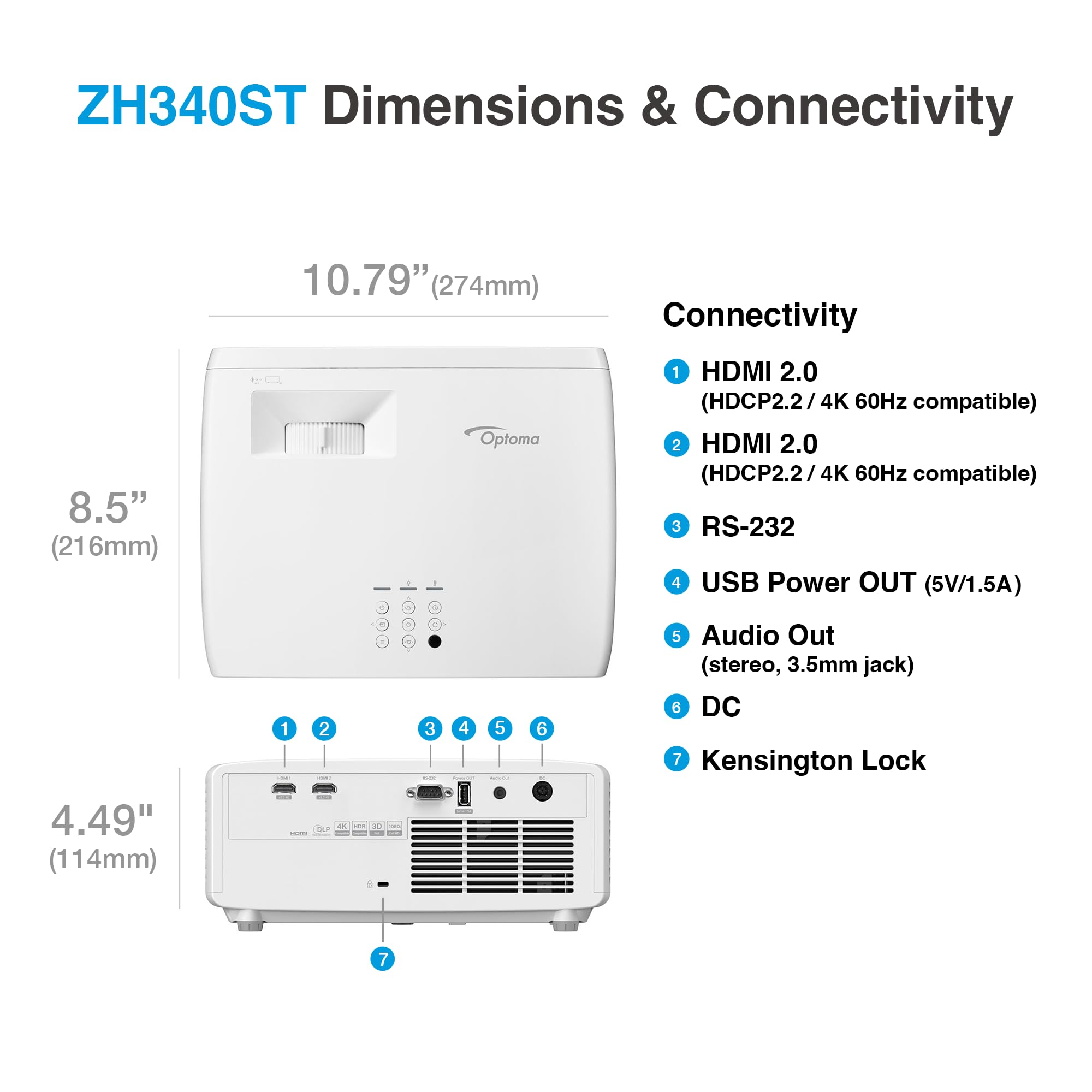DESIGNED FOR PROFESSIONAL USE: The ZH340ST is a compact, low power consumption, and low maintenance projector for modern offices and classrooms. 3,200 lumens of brightness ensures clear and crisp visuals in brightly lit environments, and the short projection distance is great for smaller spaces